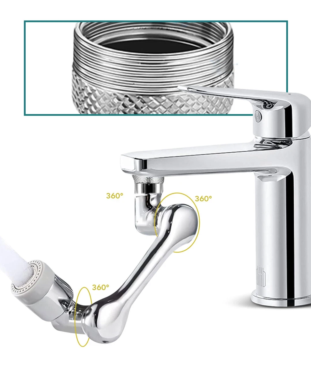 الصنبور الذكي 1080° درجة هو الحل العصري لي يجعل المطبخ والحمّام أكثر راحة ونظافة. مجهّز بدوران كامل، وضعيتين للتدفق، وجودة عالية مقاومة للصدأ. تركيب سهل فـ1 دقيقة، واستعمال عملي غادي يسهّل عليك حياتك يومياً.